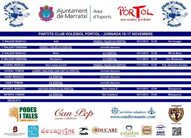 club-voleibol-portol-logoEstos son los partidos que disputaran los diferentes equipos del club este fin de semana