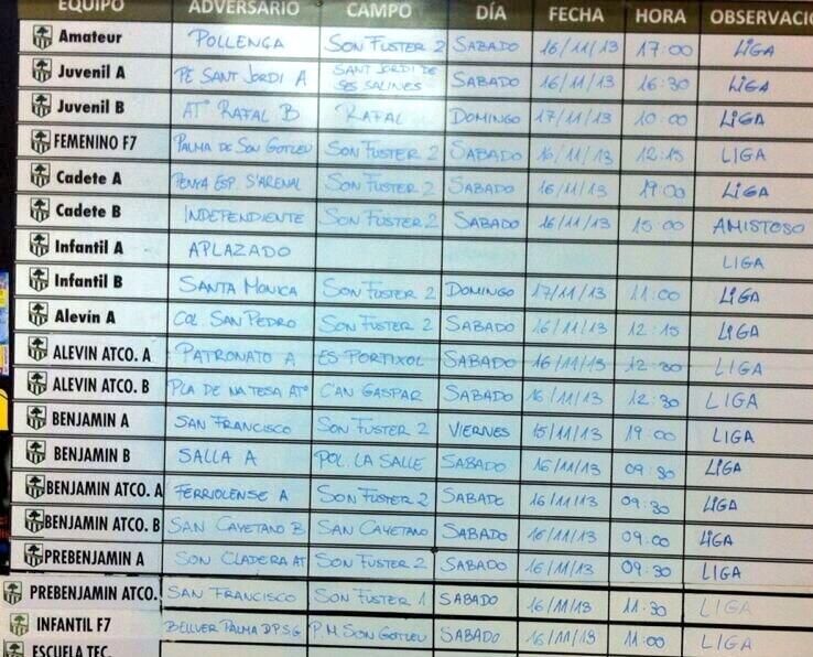 Estos son los horarios de los partidos de los diferentes equipos del club.