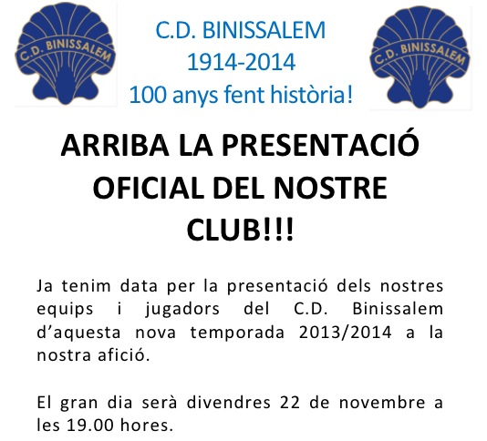 C.D. Binisalem Divendres 22 de Novembre a les 19,00 Hrs Presentació equips