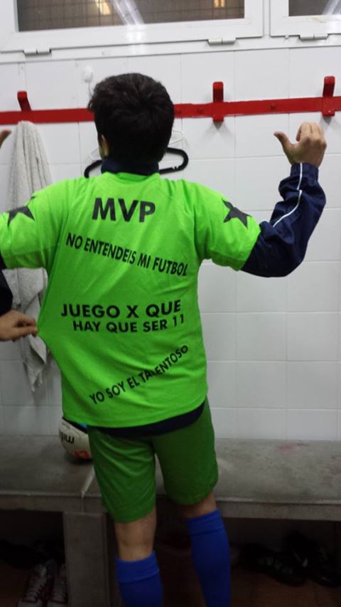 A partir de esta semana, en el equipo Amateur se elige al MPV del partido disputado en el fin de semana, el elegido deberá entrenar toda la semana con la camiseta especial hecha a tal efecto, el mÃster da tres nombres y los jugadores eligen quien se merece tal galardón, esta semana le ha tocado a JAVI NADAL «CONO», para muestra de ello os adjuntamos las fotos que corroboran la elección.
