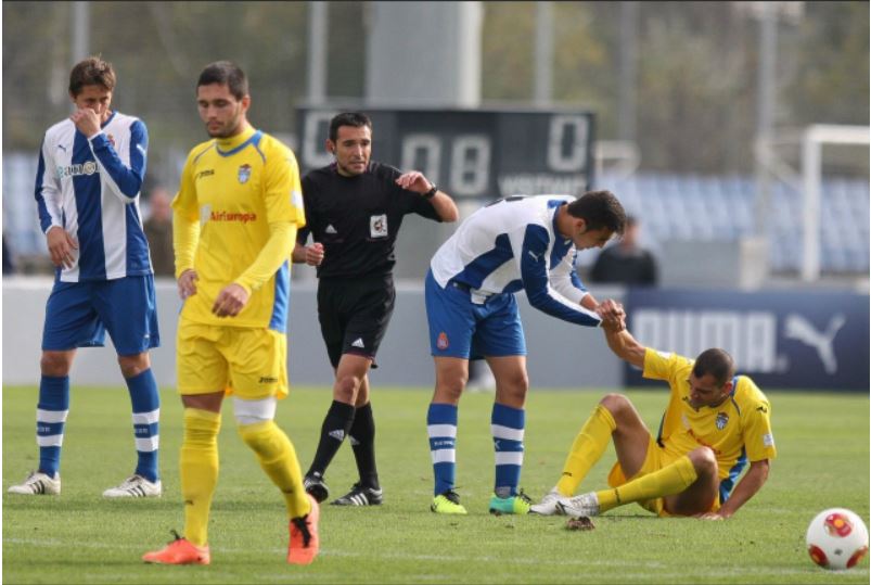 Espanyol B: Pau, Rober, Aitor, Raíllo, Eric (Ferran, min.45), Caballé, Borja, Joan, Aday (Jairo, min.56), Mamadou (Canario, min.71) i Clerc.
