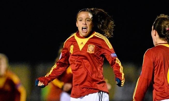 El dominio español se hizo presente desde el primer minuto ya que el equipo buscó el gol con atrevimiento: se produjeron disparos de Bonmatí bien respondido por Flaherty, de Nuria Garrote y de Sánchez Falcón.