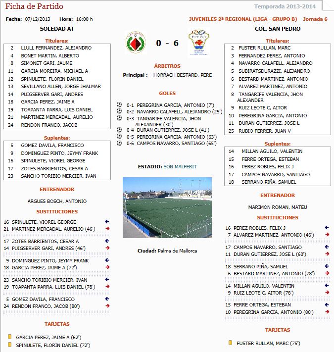 Superioridad total y absoluta del colegio de San pedro que al finalizar la primera parte ya estaba ganando con un rotundo 0-4, la Segunda parte aflojo un poco y con dos goles más redondeo el marcador. Carlos Garcia CD Soledad