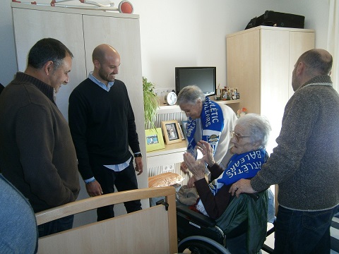 Este lunes por la mañana el presidente Dani Fiol, acompañado del entrenador Nico López y del capitán Xavi Ginard, entre otros directivos, han visitado la residencia SAR de Capdepera donde han deseado felices fiestas a todos y han hecho entrega de varios obsequios a sus residentes.