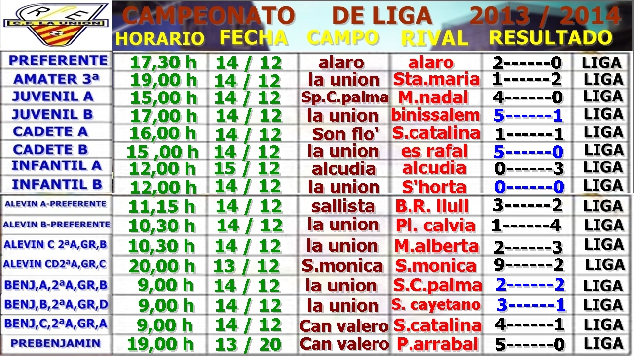 Estos son los resultados de todos los partidos jugados durante este Fin de semana Fuente J.L.Rendón