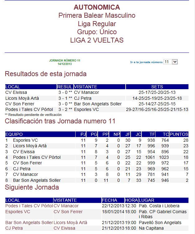 voley portol En un vibrante partido el Portol derroto por 3-2 al Esporles en un Pabellón a rebosar de gente y que disfruto de un gran partido 29-27/16-25/16-25/25-21/15-13, mientras que en el Femenino hay mucha igualdad entre el Bunyola y el Cide  a sabiendas de que ahora el Cide cuenta con un partido menos que el Bunyola