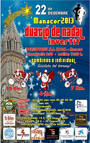 La AGRUPACIÓ ESPORTIVA MANACOR organiza para el próximo día 22 de diciembre de 2013 el DUATLÓINVERTIT DE NADAL, en Manacor, a las 10.30 horas, con salida y llegada en el polideportivo MIQUEL ÁNGEL NADAL.
