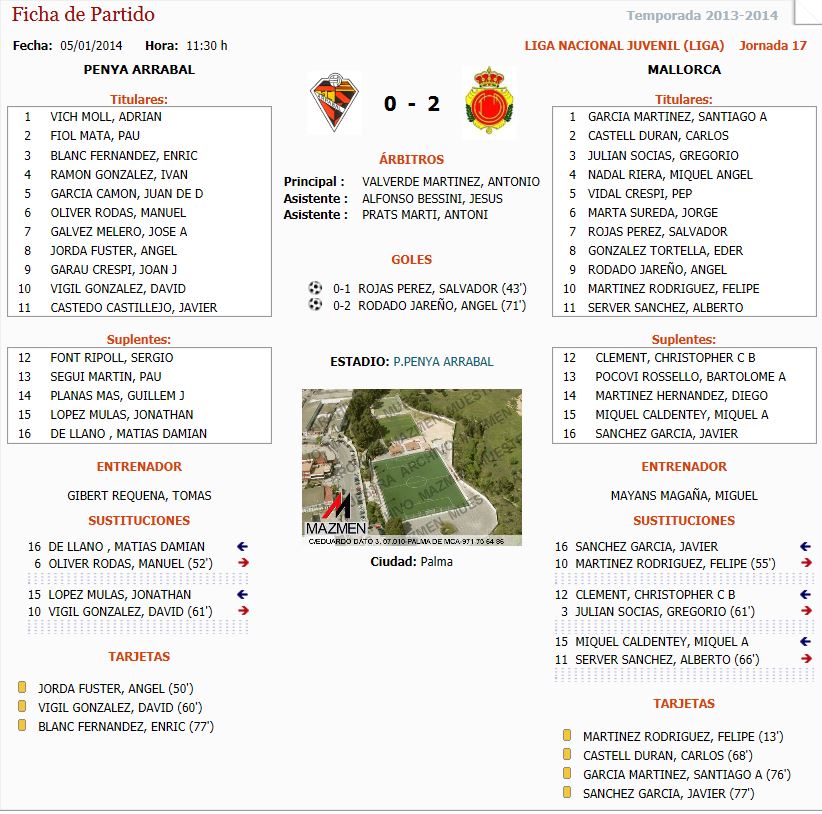 Liga Nacional Juvenil; Penya Arrabal – RCD.Mallorca (0-2) Clasificación