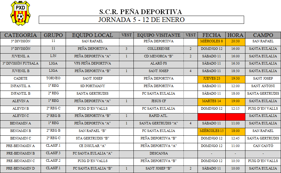 Estos son los Horarios previstos por los diferentes equipos del club.