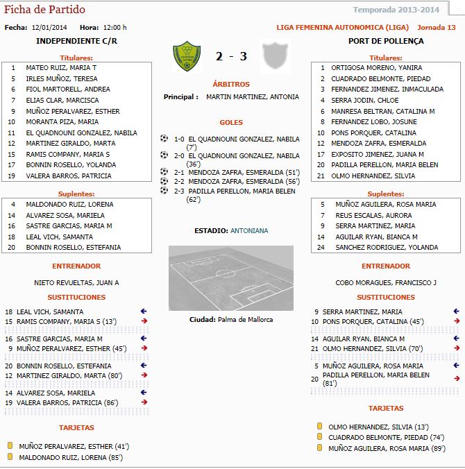Fútbol Femenino ; Independiente – Port Pollensa (2-3)‏