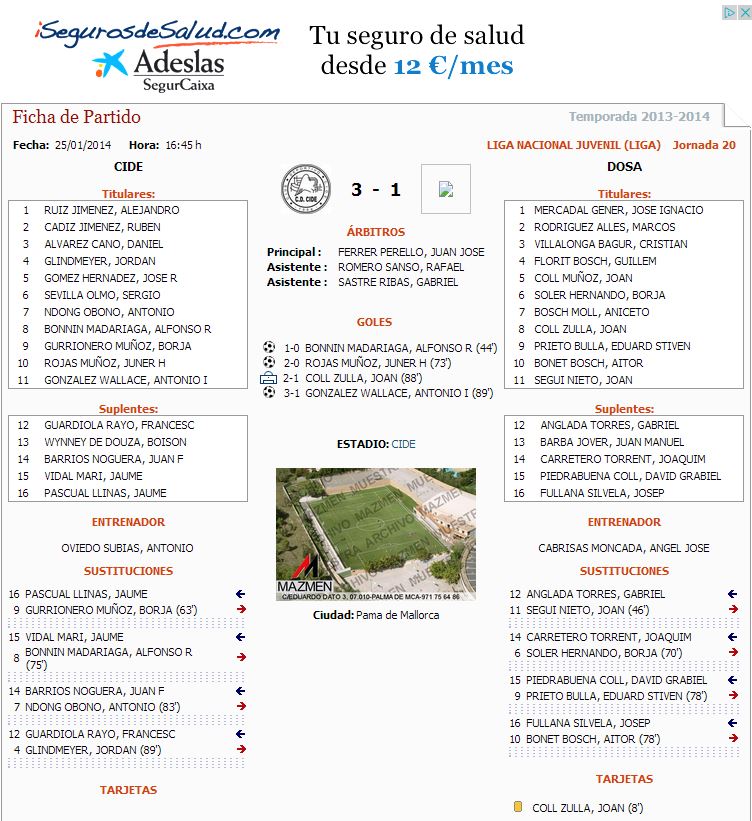 Liga Nacional Juvenil ; Cide-Dosa (3-1) El Cide se quiere agarrar al grupo de cabeza