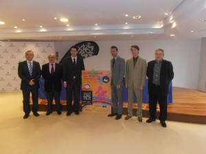 Palma, 4 de febrer de 2014.- El tinent de batlia de Cultura i Esports, Fernando Gilet, acompanyat pel vicepresident de la Federació de Ciclisme de les Illes Balears, Xavier Bonnín, ha presentat avui la VI edició del Trofeu Ciutat de Palma de Ciclisme en Pista, que se celebrarà dissabte que ve, dia 8 de febrer, a les instal·lacions del Velòdrom Palma Arena i que enguany compta amb la participació de 100 ciclistes locals, nacionals i internacionals.