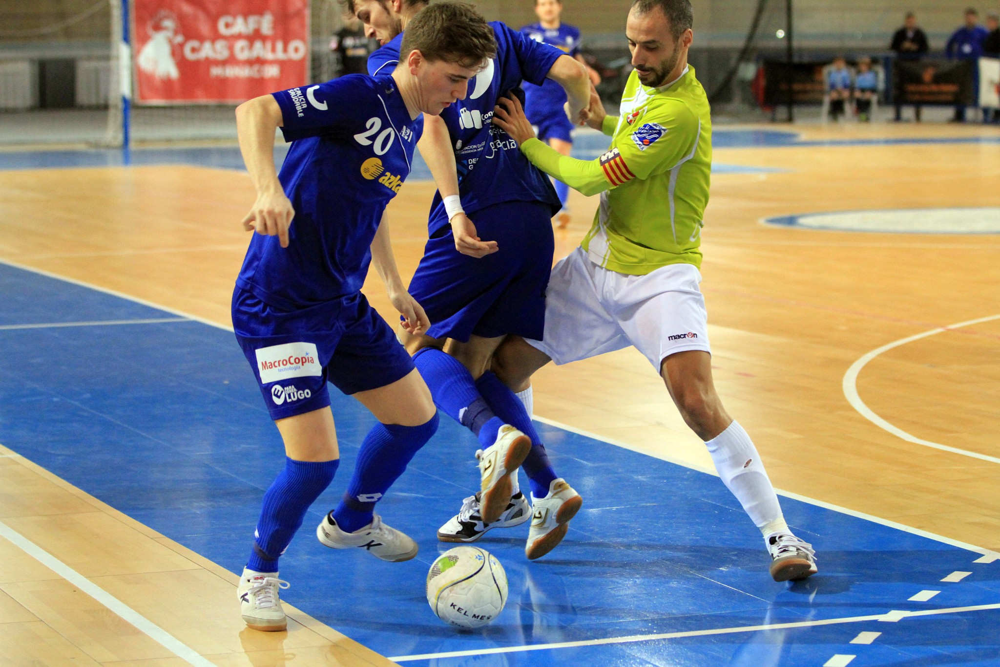 Vadillo trata de robar el balón a Álex DizDesde las 20,30 Hrs juegan en el Palma Arena el Hospital de Llevant y el Azkar Lugo siguel con nosotros y el Twiter oficial  del Hospital   Cinco inicial del Hospital de Llevant: Medina, Vadillo, Joao, Chicho y A. Vega.