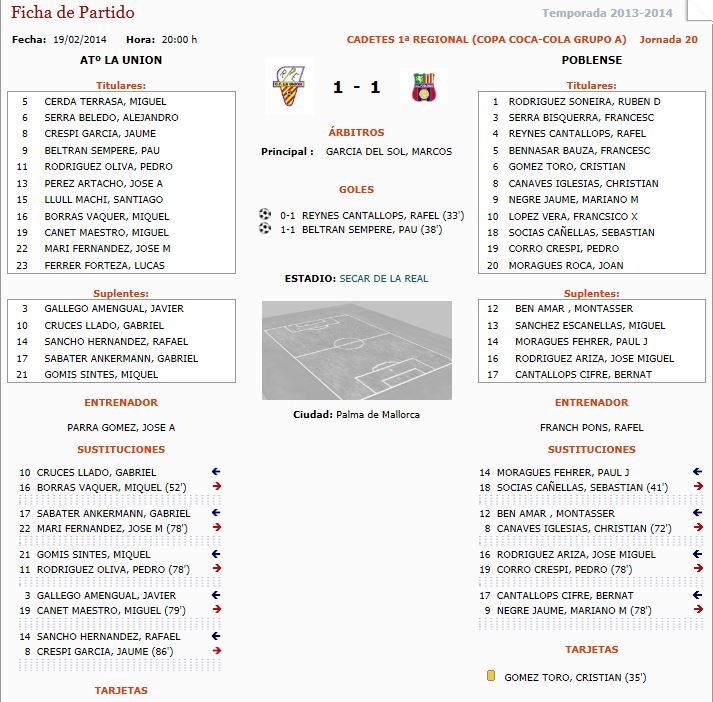 Cadetes 1ª Regional ; La Unión -Poblense (1-1) Galeria de Fotos