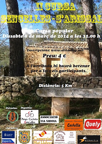 ·La II Cursa popular Sencelles – s’Arissal tindrà la sortida oficial dia 8 de març de 2014 a les 11’00 h. enfront del convent de les Germanes de la Caritat, c/ Francinaina Cirer de Sencelles. El recorregut de la cursa serà d’uns 5 Km aproximadament i la finalització està prevista devers de les 12’00 a la caseta de s’Arissal.