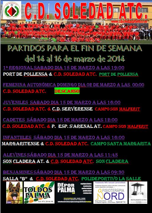 C.D.Soledad; Horarios Fin de semana