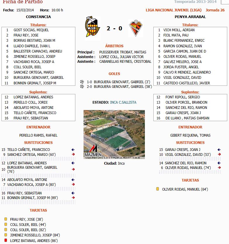 Liga Nacional Juvenil; Constancia-Penya Arrabal (1-0) el Constancia frena a los rojillos