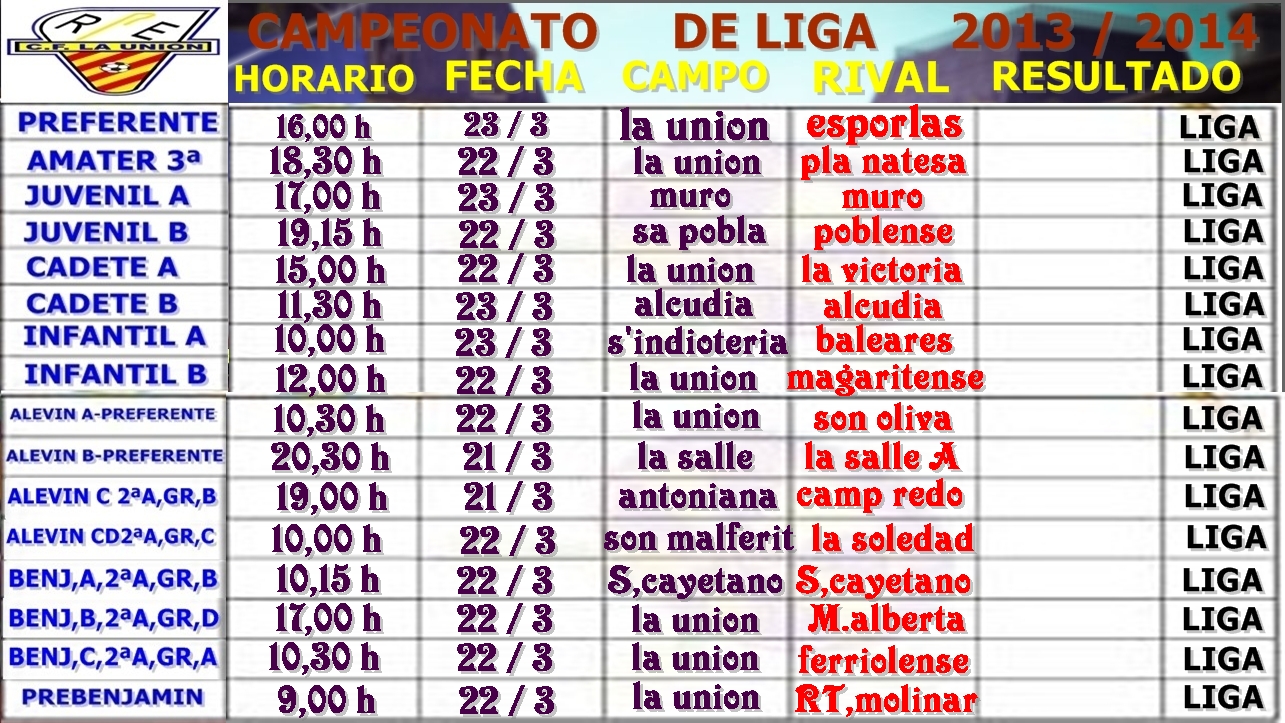 HORARIO DE PARTIDOS PARA ESTA SEMANA POR EL CF.LA UNION‏