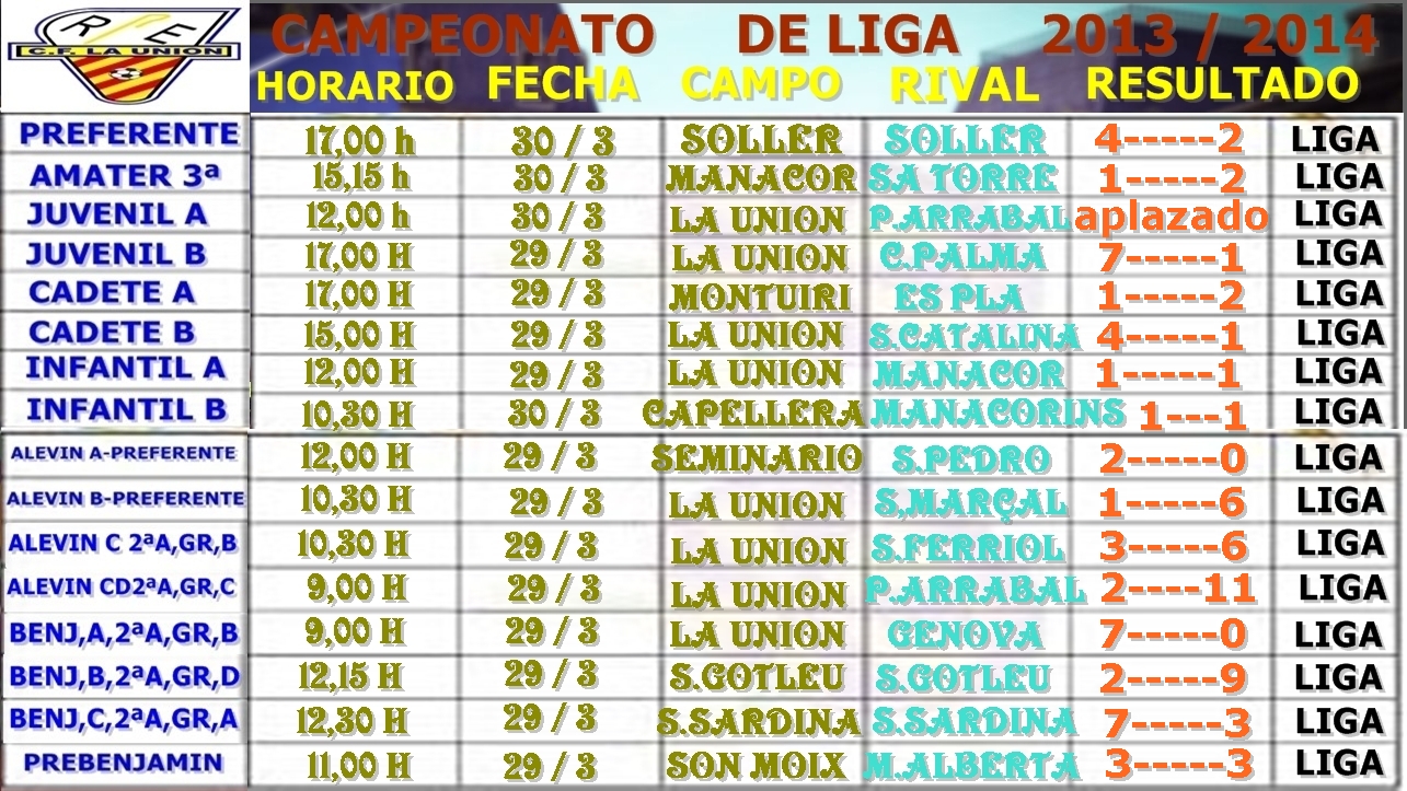 29ª JORNADAEstos son los resultados de los diferentes equipos del club esta pasada semana