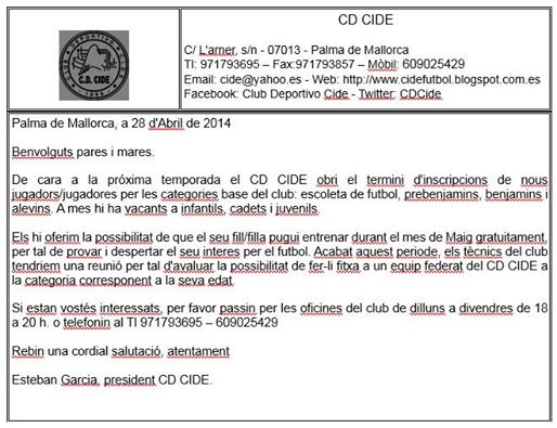 cd_cideEl CD CIDE ofereix la possibilitat de provar l’esport del futbol durant el mes de maig de franc, a tots els alumnes del Col.legi CIDE que ho desitgin, mitjançant aquesta carta, distribuida dins del col.legi.10308100_305989852891018_3527942105838353065_n