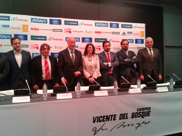 Palma, 16 de maig de 2014.- El director general d’Esports de l’Ajuntament de Palma, Damià Vich, ha assistit avui a l’edifici de Telefónica de la Gran Vía madrilenya a la presentació del Campus Vicente del Bosque. L’objectiu d’aquest campus, que es celebra per primera vegada a Palma de Mallorca, és segons del Bosque, “que els participants ho passin bé i aprenguin valors de bones persones”. De fet, els Campus tenen relació amb la Fundació Síndrome de Down, i “destaquen com a exemple d’integració”.