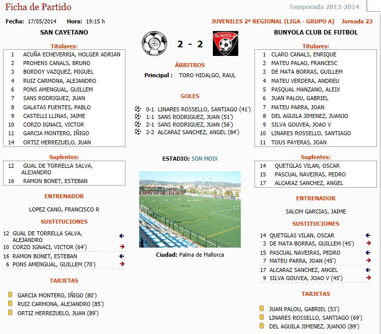 Partido disputado en las Instalaciones de Son Moix y en el que solo cabe de destacar el debut de dos jóvenes Liniers que lo han hecho perfectamente , partido que termino con un justo 2-2