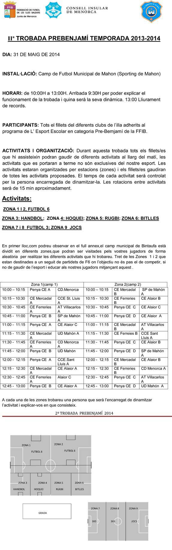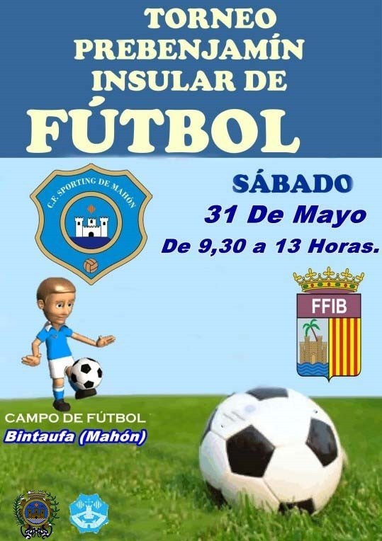 Jornada de encuentro entre los Pre benjamines en la jornada del deporte escolar con la participación equipos de toda la isla en las instalaciones de Bintaufa (Mahón) sábado dÃa 31 de Mayo por la mañana.