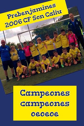 Enhorabuena a nuestros prebenjamines por su campeonato de liga! Reñido hasta la última jornada! Este club está viviendo una época dorada gracias a estos niños tan maravillosos! Campeones prebenjamin, campeones BenjamÃn y campeones alevin…. Ese Sonka Oe!. Facebook Son Caliu