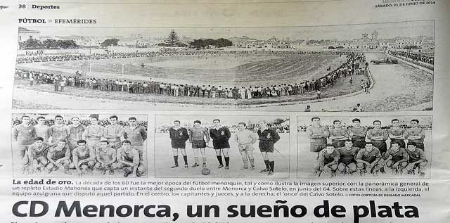 EFEMERIDES-DE-UN-PARTIDO-HISTORICO-PARA-ASCENDER-A-2a-div1Tal cual publica el Diario Menorca, ayer se cumplió medio siglo del partido de desempate entre el CD. Menorca y el CD. Calvo Sotelo, el cual se desarrolló en La Condomina (Campo del R. Murcia), en el cual los designios del mal arbitraje hicieron que el CD. Menora se viera imposibilitado de ascender a la división de plata del fútbol Nacional.
