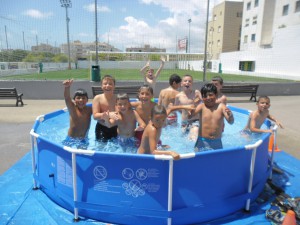 La sesión diaria de tecnificación del Campus ha constado de 4 partes: la 1ª con sesión de entrenamiento de técnica de 90′ minutos, la 2ª merienda de 30′ minutos, la 3ª técnico/táctica con partidos o mundialitos de 75′ minutos y la 4ª muy querida por los alumnos el baño refrescante en las piscinas. Los alumnos han estado divididos en tres grupos (por edades) pequeños, medianos y grandes.