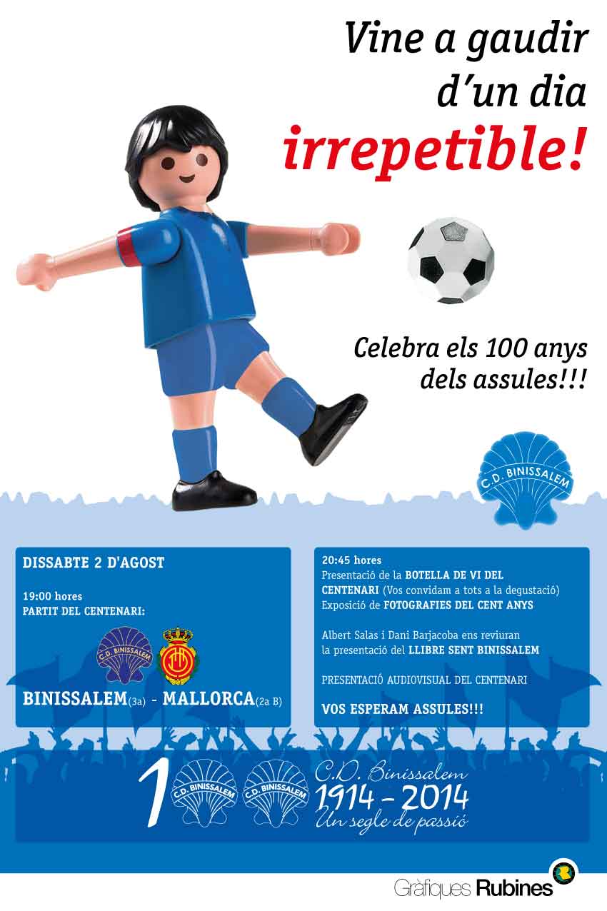 El CD Binissalem presenta el cartel de los actos que tendrán lugar el próximo dÃa 2 agosto. Próximamente os iremos informando de todo lo que suceda referente a nuestro club, saludos