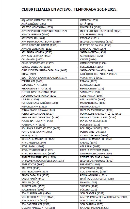 FFIB ; Circular nº2 Temporada 2014/2015 «Filialidad entre Clubes»