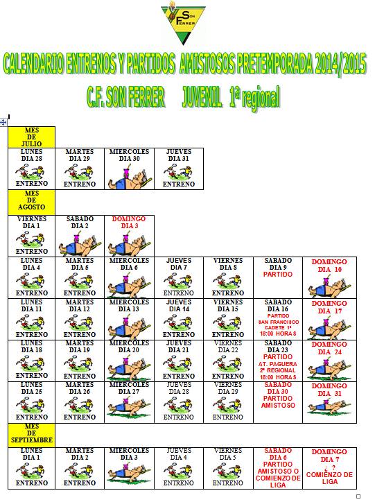 …n marcha, un mes donde la pretemporada será dura, calor, resaca de verano, acoplamiento a nuevos entrenadores y diferentes métodos de trabajo, en fin dinámica nueva, pero con ganas, compromiso y seriedad todo se lleva a buen puerto. En el equipo amateur son cerca de cuarenta los jugadores que estarán presentes, de entre los cuales el entrenador tendrá la difÃcil misión de elegir, vienen del Génova, Santa Ponsa, Platjes de Calvia, Soledad At. etc., asà como jugadores que habÃan abandonado la disciplina del club, por un motivo u otro y que han sido repescados por el director general, lo que nos alegra sobremanera el ver que estos jugadores nacidos y hechos en la casa vuelven a ella. Aquà os dejamos la planificación del equipo Juvenil. Ver más
