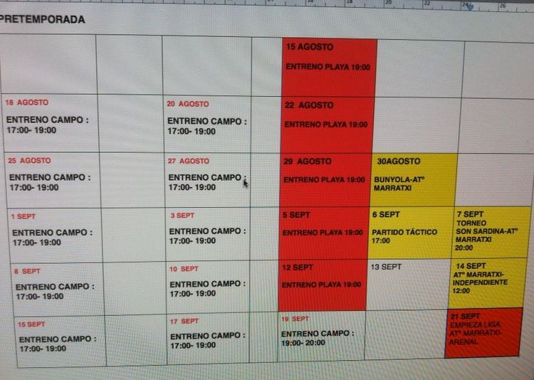 At.Marratxi Femenino; Planing Pretemporada 2014/2015 (Inicio 15 de Agosto)