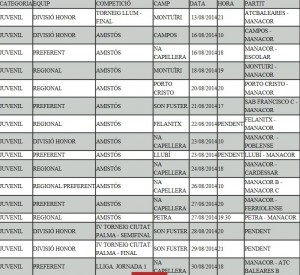 C.E. MANACOR ; AMISTOSOS DELS JUVENILS I CADETS MES D’AGOST