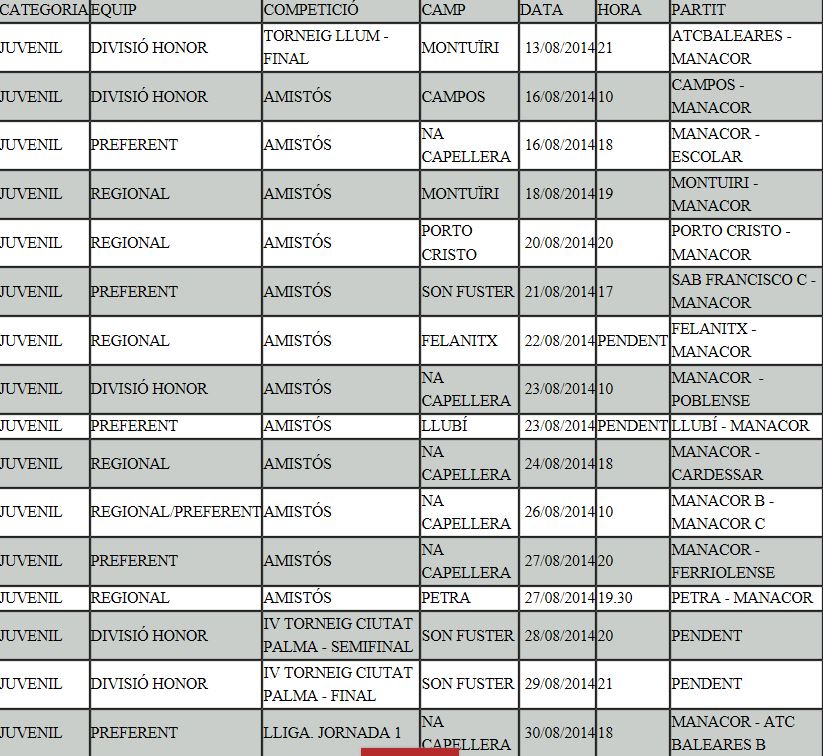 Una molt bona planificació per arribar a punt a l’inici de temporada, que cal recordar que pel Manacor B comença el dia 30/08 a na Capellera contra l’Atl. Baleares i el Manacor C  proper  31/08 a contra el Platges de Can Picafort.
