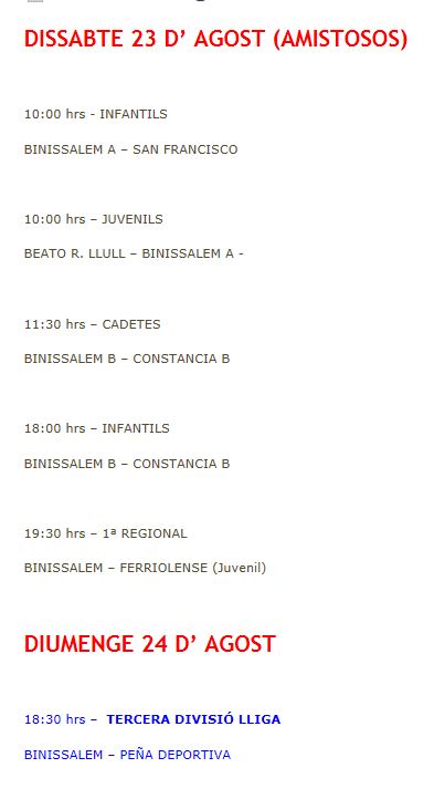 Estos son los diferentes partidos del club y con el inicio de Liga del primer equipo de la Tercera DivisiĂłn
