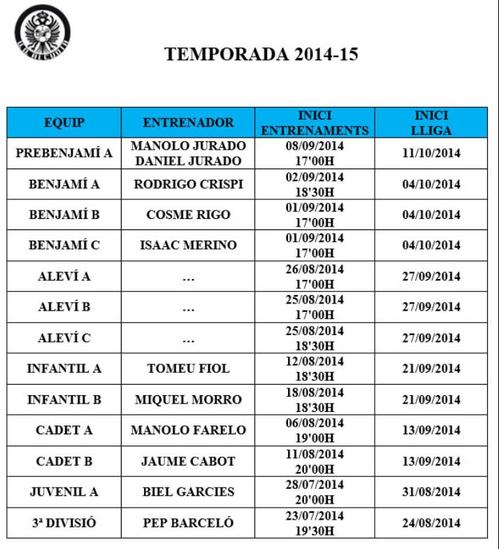 El club ha dado a conocer el inicio de entreno de los equipos que confirman las diferentes categorĂas.