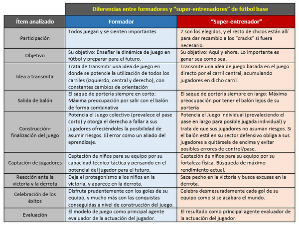 Explicación de la importancia en el fútbol base entre elegir un técnico «ganador» y uno «formador»