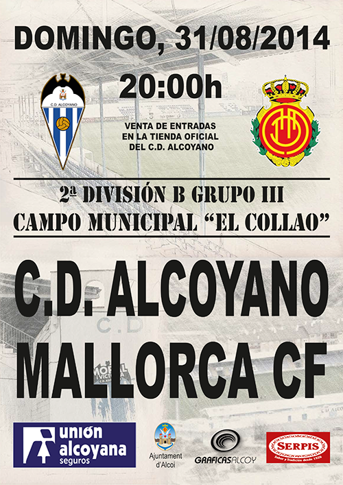 30 agosto 2014 | Por lorenzo | Categoria: Horarios y resultadosEl Deportivo Alcoyano recupera efectivos para medirse al Mallorca B el próximo domingo a las 20 horas en El Collao y podrá contar seguramente con Julio de Dios y Jesús Alfaro. A quién pierde Óscar Cano es a Allan, que podrÃa tener parte del  ligamento de su rodilla roto. Son duda Joan Vich y Navarro. Jorge Perona queda totalmente descartado.