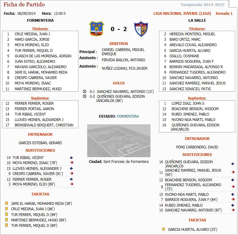 Liga Nacional Juvenil; Formentera-La Salle (0-2) Pistoletazo de salida