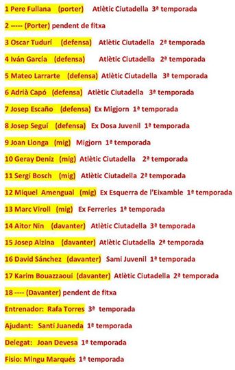 COMPOSICIÓ QUASI DEFINITIVA ATLÈTIC CIUTADELLA REGIONAL PREFERENT TEMPORADA 2014/2015: