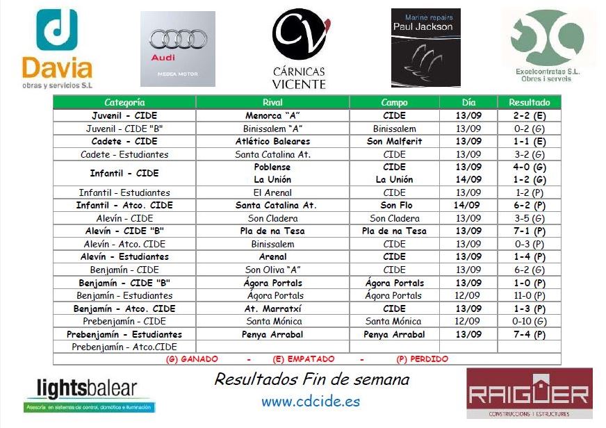 cd_cideEstos son los resultados de todos los equipos del club