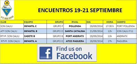 Estos son los Horarios de este proxĂmo fin de semana y en el que arrancan los Infantiles