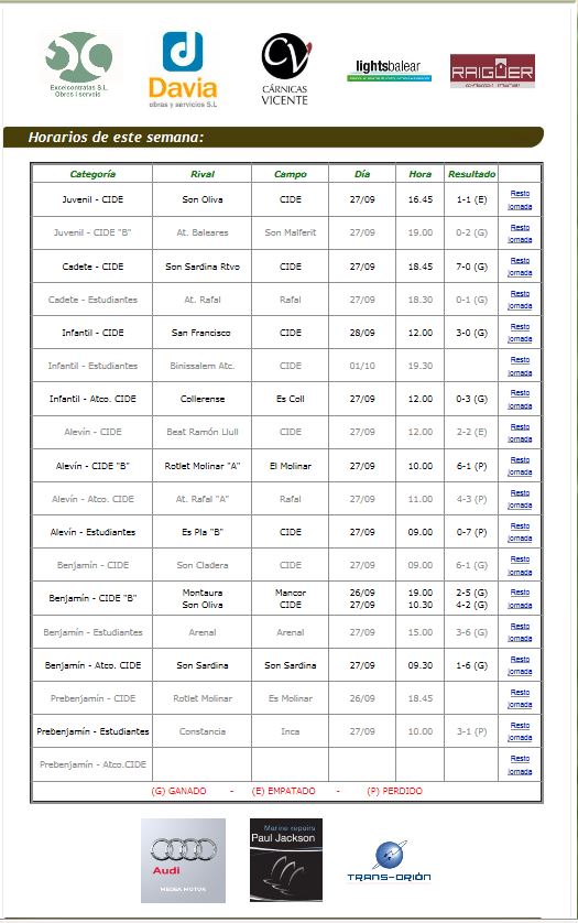 Estos son los resultados de los diferentes equipos del clubfuente web cd cide