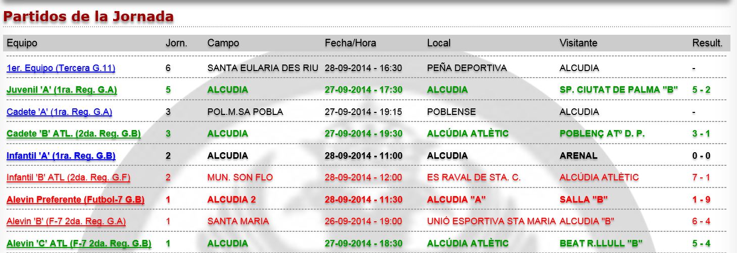 U.E.Alcudia; Resultados Fin de semana