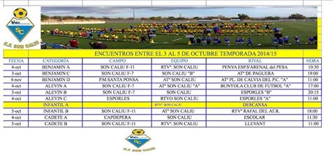 El Son Caliu ha hecho publico los horarios de los partidos de los diferentes equipos del club.
