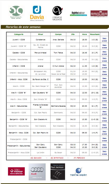 C.D. CIDE; Resultados de este Fin de semana