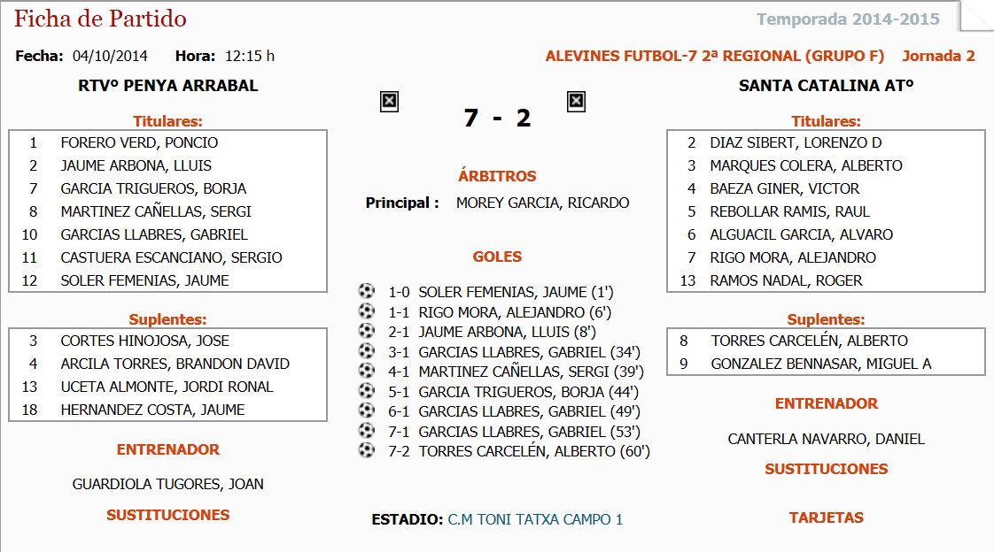 Video Resumen ; Penya Arrabal – Santa Catalina Atco (7-2) Alevin 2º Regional