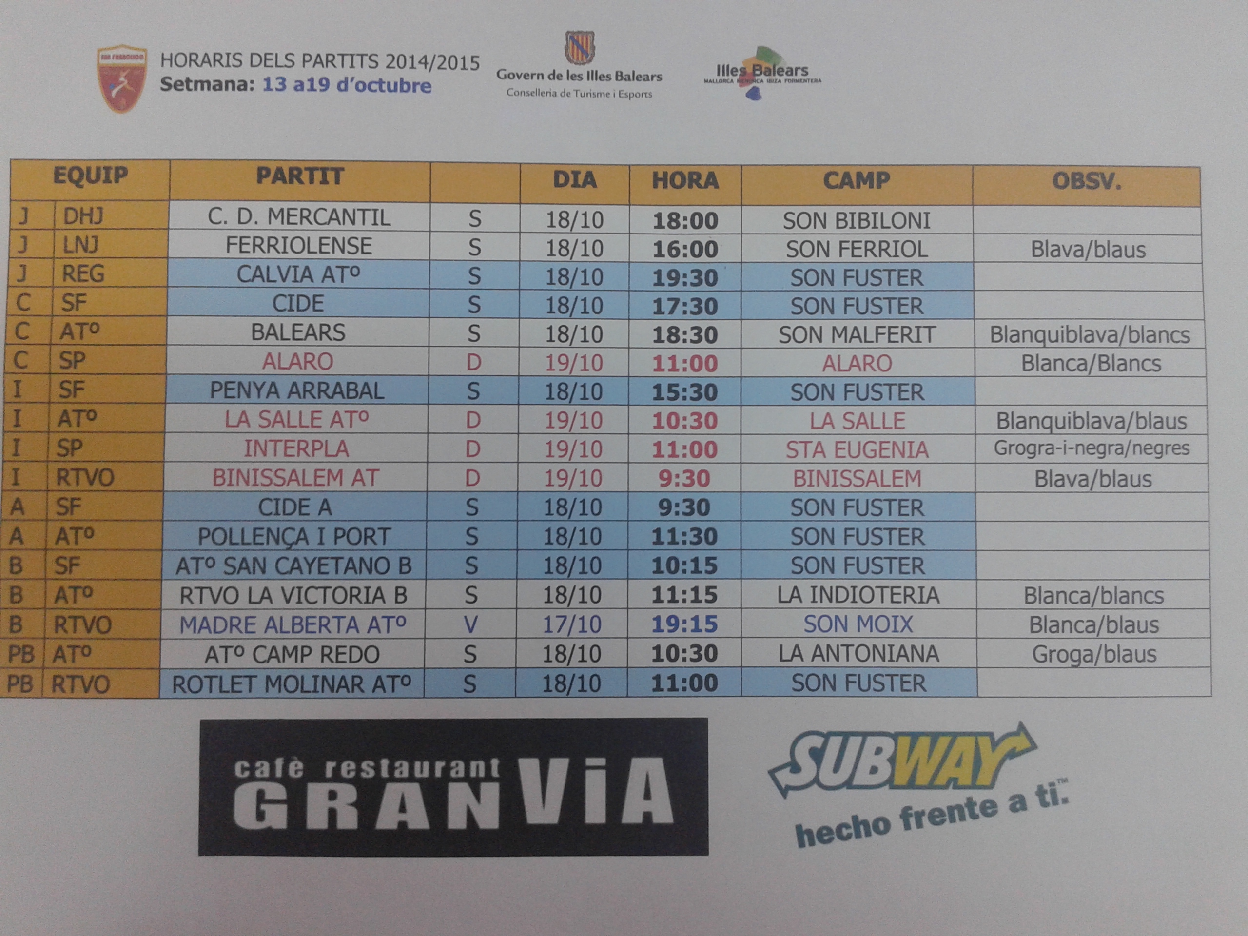 14 octubre 2014 | Por lorenzo | Categoria: Horarios y resultados